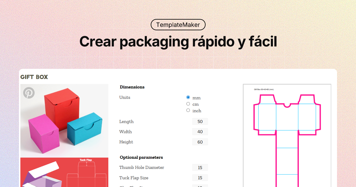 TemplateMaker.nl es una herramienta online gratuita que permite diseñar plantillas de cajas, estructuras de papel y packaging ajustando dimensiones, material y pliegues. Descarga en formatos como PDF, SVG, DXF o PNG sin costo alguno. Ideal para diseñadores, makers y prototipadores que necesitan dielines personalizados listos para imprimir o cortar.