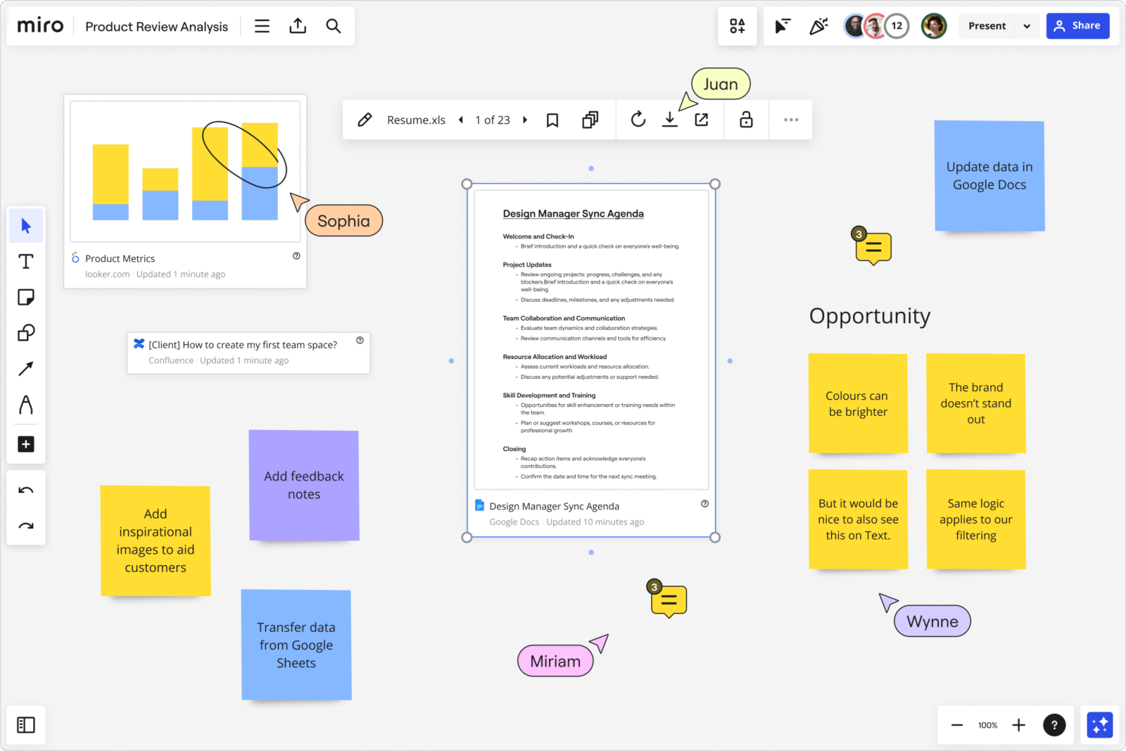 Miro es un espacio de trabajo visual e interactivo que permite a equipos remotos o híbridos colaborar en tiempo real o de forma asincrónica. Su lienzo ilimitado, junto con herramientas como mapas mentales, tableros Kanban, diagramas, notas adhesivas y presentaciones integradas, facilita la ideación, planificación y diseño conjunto. Además, Miro ofrece una plataforma robusta de desarrollo con APIs, SDKs y más de 130 integraciones con otras apps.